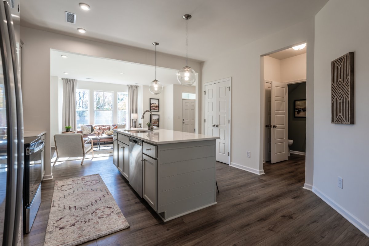 This garage townhome, Denville floor plan, offers sleek LVP flooring throughout the first floor, three bedrooms and an open floor plan. The spacious family room flows seamlessly into the kitchen which boasts a large center island, granite counters and dedicated pantry space offering great storage. The kitchen opens to the dining area. Picture yourself enjoying a peaceful morning on the covered porch just off the dining area, or retreating to the spacious primary suite upstairs, complete with a large walk-in closet and a private bath with walk-in shower. This home includes two additional bedrooms, a full bath, and a convenient laundry closet. We are excited to bring brand new GARAGE townhomes to Sanford, NC. Residents will enjoy low-maintenance living just minutes from charming downtown Sanford, NC. Sanford is the perfect place to call home, offering an ideal blend of living, working, and leisure. With its convenient location, family-friendly atmosphere, and top employers, Sanford promises a peaceful, small-town experience. Townhome is under construction - Photos are of the decorated model from builder's library and shown as an example only (colors, features and options will vary).