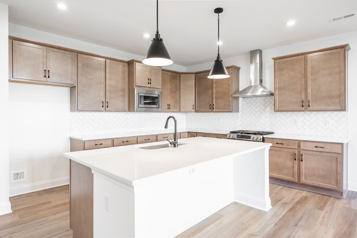 READY NOV/DEC! The kitchen is the centerpiece of the home in the Davenport, with large center island, quartz counters, gas cooking and walk-in pantry space. It overlooks the dining area and family room, creating an open layout